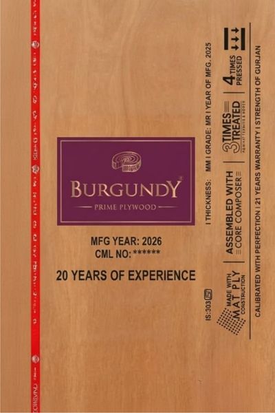 Burgundy Prime Plywood offers dependable quality, good bonding strength, and long-lasting performance, making it a practical choice for interior furniture and carpentry work.